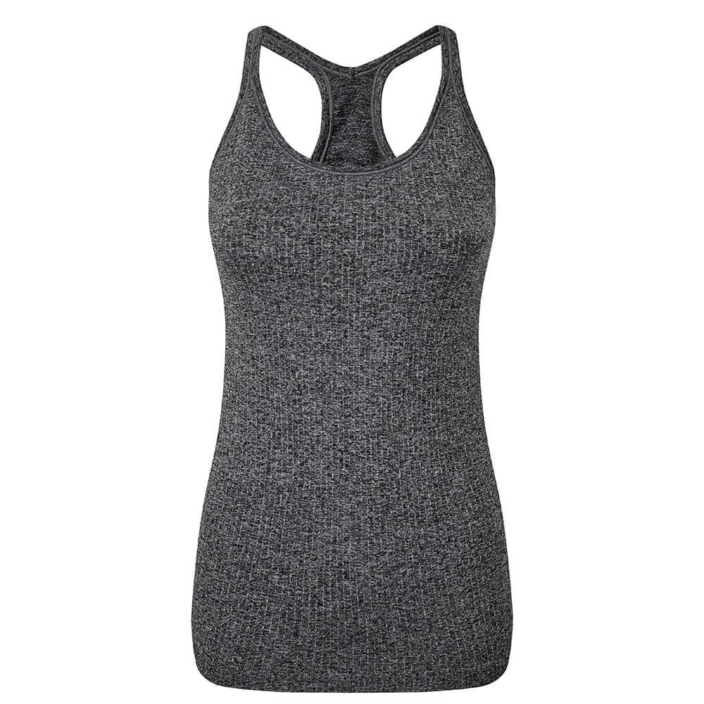 • Seamless vest Body sculpting design Racerback Removeable inner bra pads for invisible support Ribbed fabric 100% Nylon.