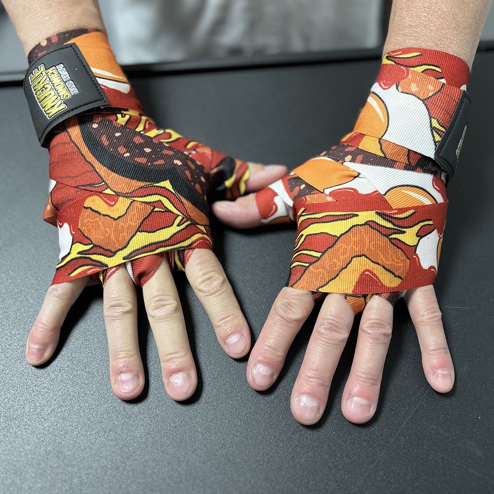 Decked out in a playful “working man’s” breakfast roll graphic, these wraps add a fun, food-fuelled vibe to your training sessions that’s sure to turn heads.